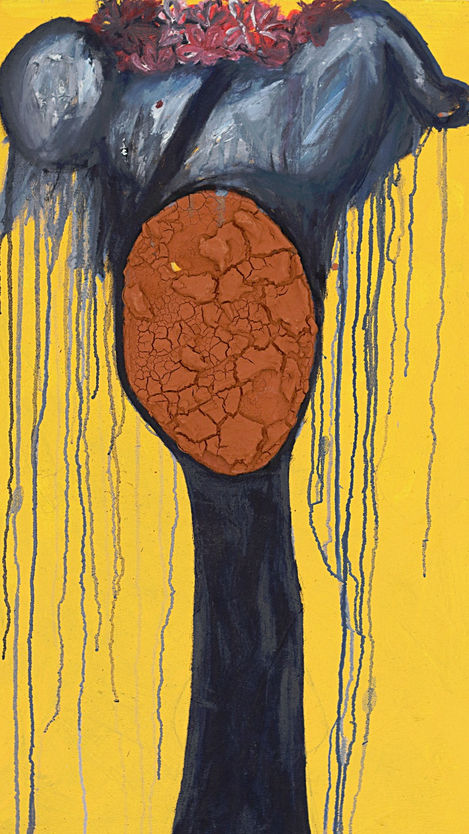 I chose to create a self-portraits that exist through dream-scapes. My current work explores the intersection of women’s bodies in particular the conflicting demands of society. I am interested depicting the body as a vessel and instigator for cultural baggage. These female figures have dried up cracking red clay as face, as if she is morphing into a different higher being. For me this is a place where fiction and reality meet. I referenced a lot from western history and juxtaposed it against our current social issues